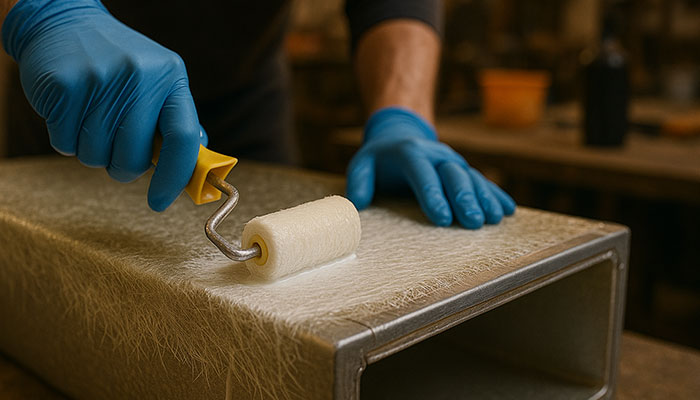 اجرای عملیات پوشش الیاف و رزین فایبرگلاس بر روی کانالهای پیشعایق پلییورتان، با هدف افزایش مقاومت، جلوگیری از شکستگی و بهبود طول عمر سیستم.